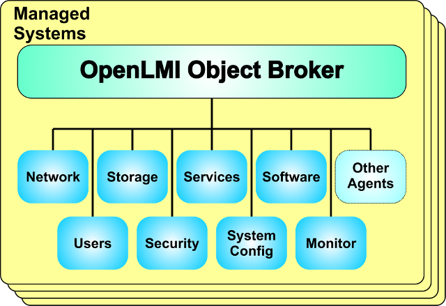 - An agent infrastructure which allows functional agents to be developed and deployed. In DMTF/CIM terminology, OpenLMI Agents are called CIM Providers. The agent infrastructure supports introspection, meaning that each agent provides information on the attributes and methods it supports; there is no need to pre-define or hardcode the agents object model. This also allows agents to be easily extended – new capabilities can be added to an agent, the old agent unregistered with the CIMOM and the new agent registered with the CIMOM, and the new capabilities used. If the existing capabilities were not changed, the new extended agent is a transparent direct replacement for the previous agent.